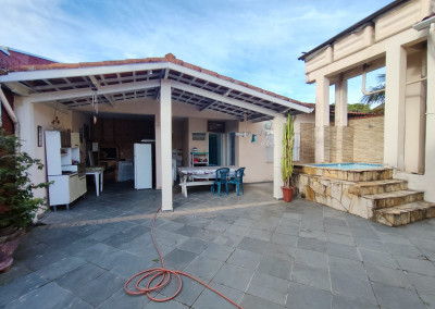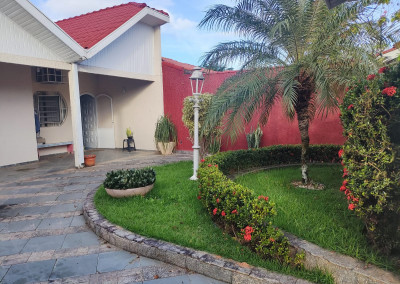 CASA TÉRREA COM 3 DORM, SENDO 1 SUÍTE, SALA, COPA, COZINHA, WC SOCIAL, AREA DE SERVIÇO, CHURRASQUEIRA, VAGAS DE GARAGEM PARA 3 OU + VEÍCULOS, QUARTO NOS FUNDOS, PEQUENA PISCINA TIPO OFURÔ, JARDIM EM LOCALIZAÇÃO SEGURA E AGRADÁVEL.